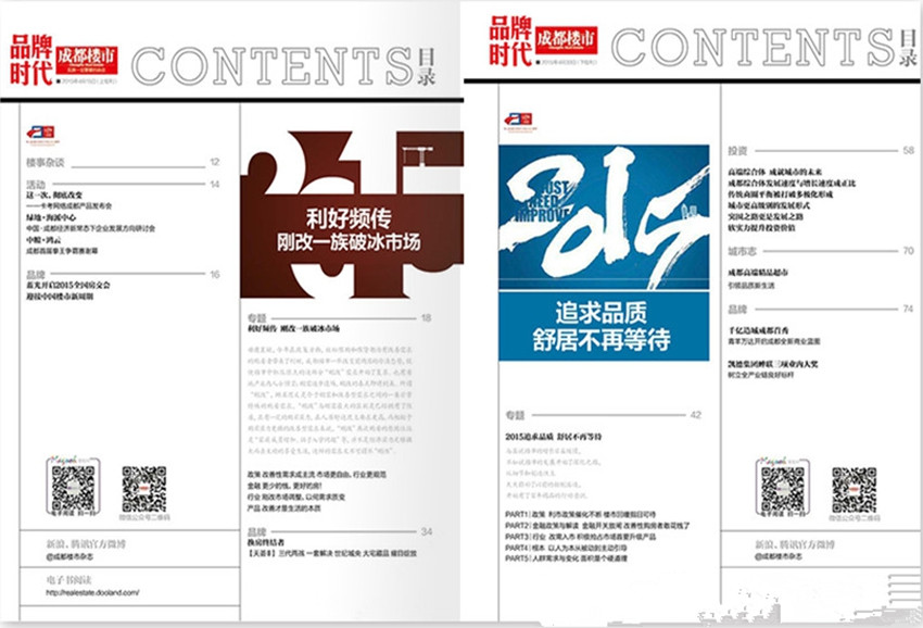 秉承客觀、公正、專業(yè)的服務(wù)原則,結(jié)合成都市房地產(chǎn)交易中心交易數(shù)據(jù)分析,為購房者提供最新的樓市行情報道。并以全方位的樓盤檢索、全景式購房地圖、客觀 專業(yè)的樓盤點評和超大篇幅的樓盤個案信息幫助購房者輕松完成購房初選。除了房產(chǎn)市場信息外,雜志還會提供一些關(guān)于購房流程、貸款政策、裝修指南等實用的購房指南文章。這些指南可以幫助購房者更好地了解購房流程,把握貸款政策,提供裝修建議,使購房過程更加順利和高效。