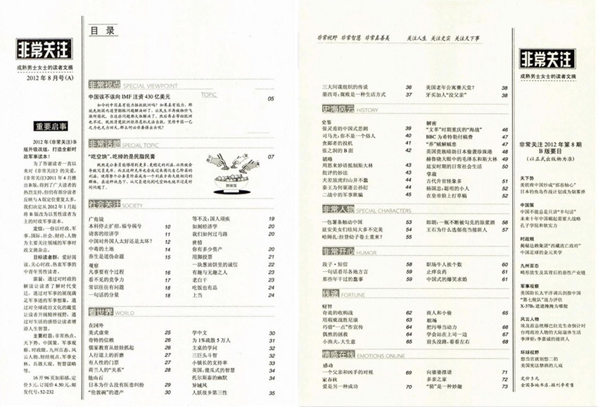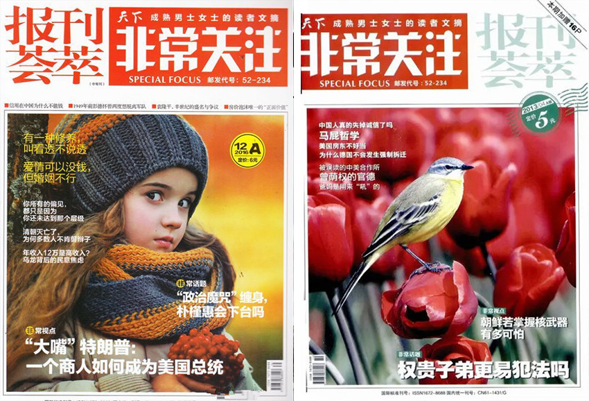 雜志是一本旨在提供獨立、客觀、深入報道的專業(yè)刊物。通過深度研究、專業(yè)評論和特別企劃,該雜志努力引發(fā)讀者對社會議題的思考和關(guān)注,推動社會進(jìn)步和發(fā)展。如果您對社會話題和時事問題感興趣,閱讀《非常關(guān)注》雜志將會給您帶來豐富的信息和觀點。