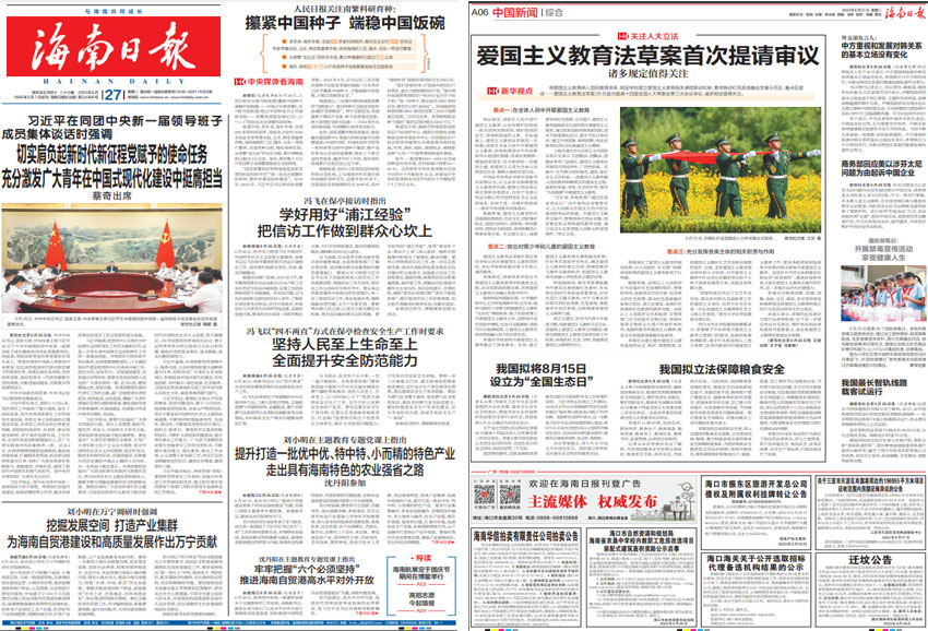 《海南日報》是中國海南省委、省政府主管的全省性綜合日報,成立于1950年,是海南省最具權(quán)威、影響力和歷史傳統(tǒng)的報紙之一。該報憑借其新聞資訊全面、報道深入、風(fēng)格獨(dú)特等優(yōu)勢,已經(jīng)成為海南省政、商、文、學(xué)、科研等領(lǐng)域的最具權(quán)威性、影響力的報紙。
