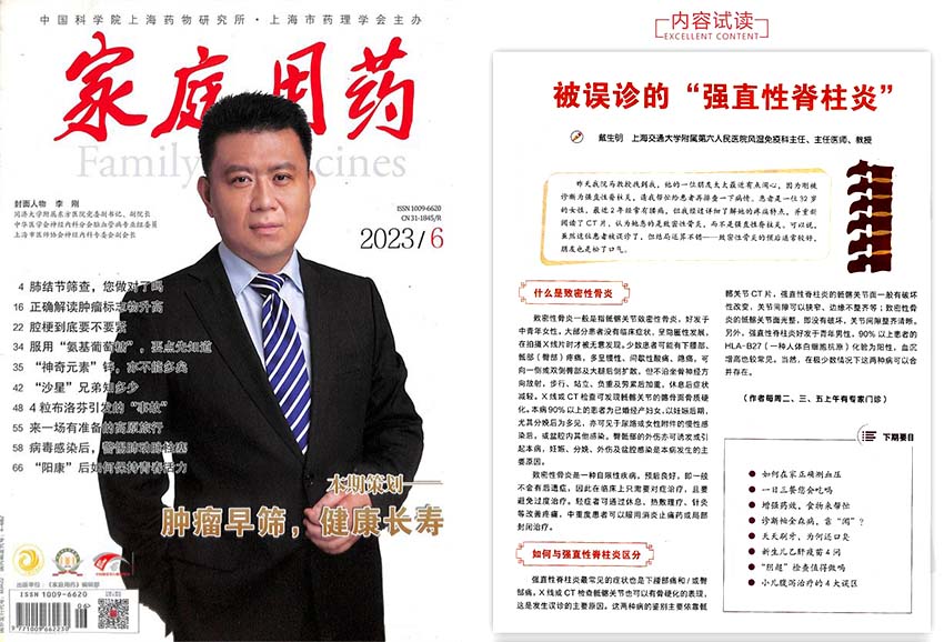 《家庭用藥》雜志創(chuàng)刊于2001年,是由中科院主管和主辦的唯一一本醫(yī)藥類科普雜志。自創(chuàng)刊以來,雜志始終堅(jiān)持“依靠專家,面向百姓,傳播醫(yī)藥科普保健知識(shí)”的辦刊宗旨,主要內(nèi)容均是邀請(qǐng)具有豐富臨床經(jīng)驗(yàn)的醫(yī)藥學(xué)專家親自撰稿,為中老年讀者及各類慢性病患者的日常保健和求醫(yī)問藥提供實(shí)用信息和權(quán)威指導(dǎo)。