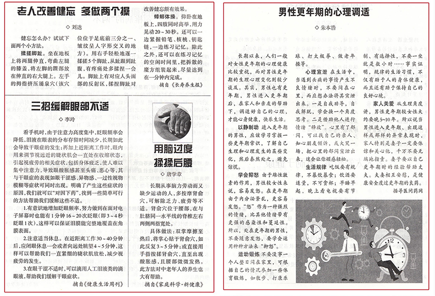 《開心·康壽文摘》雜志每期內(nèi)容均精選自全國(guó)百余種書、報(bào)、刊、網(wǎng)絡(luò)有關(guān)老年人健康長(zhǎng)壽、保健養(yǎng)生方面的文章,強(qiáng)調(diào)內(nèi)容的科學(xué)性、實(shí)用性、針對(duì)性和可讀性。