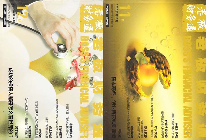 《老板財(cái)務(wù)通》是 “華文企管《財(cái)商月刊》”系列之一,是國(guó)內(nèi)價(jià)格最高、不刊登廣告、完全憑精到實(shí)用的內(nèi)容取勝的經(jīng)管雜志。每篇文章都有專家精心獨(dú)到的點(diǎn)評(píng),外觀設(shè)計(jì)古樸典雅,以企業(yè)老板為主要閱讀對(duì)象,協(xié)助中國(guó)企業(yè)老板運(yùn)用財(cái)務(wù)思維經(jīng)營(yíng)企業(yè),“增值個(gè)人財(cái)富、避免企業(yè)財(cái)務(wù)危機(jī)、提前鎖定利潤(rùn)……”本雜志立足于為讀者提供全面、準(zhǔn)確、實(shí)用的財(cái)務(wù)管理知識(shí)和信息,幫助企業(yè)主和財(cái)務(wù)管理人員更好地理解和應(yīng)對(duì)復(fù)雜的財(cái)務(wù)環(huán)境,提