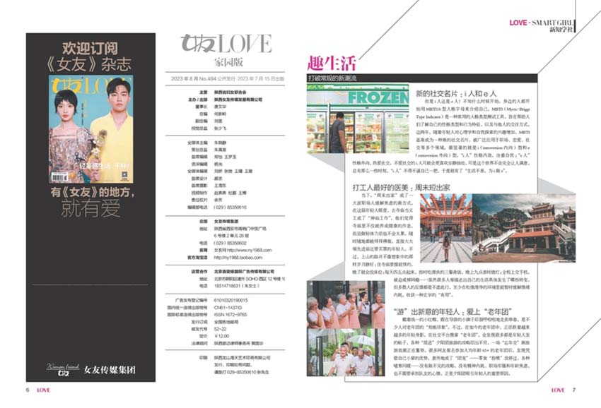 月刊 一年12期 彩色銅版紙 出版單位:陜西女友傳媒發(fā)展有限公司