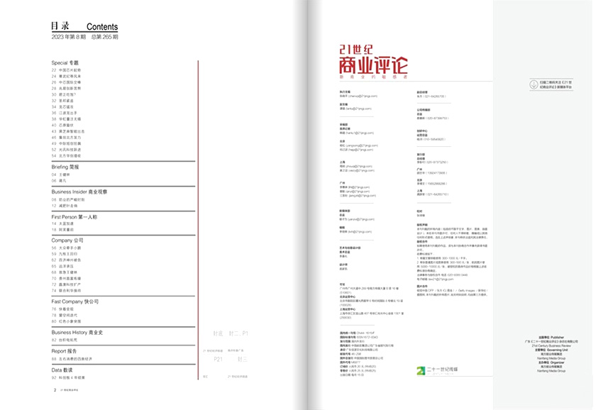 《21世紀(jì)商業(yè)評(píng)論》主要欄目:現(xiàn)場(chǎng)、特別報(bào)道、議程、封面故事、價(jià)值、遠(yuǎn)見(jiàn)、態(tài)度。