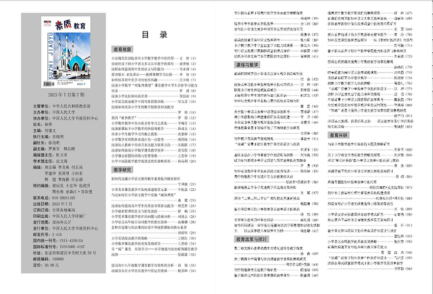 《素質教育》雜志于1991年創(chuàng)刊,其主要目標是圍繞素質教育,宣傳黨和國家的教育方針、政策以及法規(guī),同時介紹國內外素質教育領域的最新成果和研究動態(tài)。雜志的宗旨是促進教育改革與發(fā)展,提高學生的綜合素質和核心競爭力。雜志致力于深入挖掘素質教育的理念、價值和策略,為教育工作者、學生家長和教育決策者提供豐富的信息和實踐經(jīng)驗。雜志內的內容涵蓋廣泛。