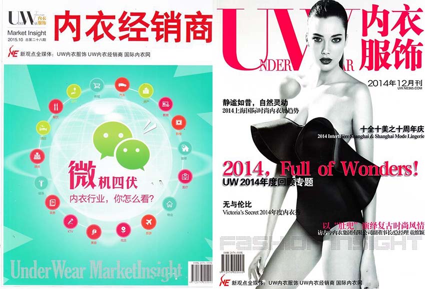 《UW內(nèi)衣服飾》2009年3月成功改版,成為內(nèi)衣行業(yè)內(nèi)首創(chuàng)的雜志式報紙。2009年12月正式改版為雜志形式。我們致力于以國際化、時尚化的大視野,服務全球內(nèi)衣品牌,為讀者提供高品位有價值的精英讀品。《UW內(nèi)衣服飾》是中國極具國際影響力的中文專業(yè)內(nèi)衣雜志,她匯集了國內(nèi)優(yōu)秀的專業(yè)編輯制作團隊與國內(nèi)外權威業(yè)內(nèi)人士資源,向?qū)I(yè)讀者傳達國際、國內(nèi)最新內(nèi)衣品牌資訊、時尚潮流、設計趨勢、營銷和管理知識等。