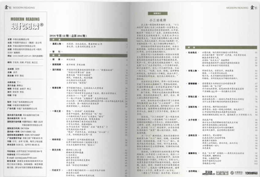 《現(xiàn)代閱讀》是一本知名雜志,以其豐富的內(nèi)容、深入的觀點(diǎn)和高質(zhì)量的寫(xiě)作而著名。創(chuàng)刊以來(lái),堅(jiān)持“傳播新理念,交流新經(jīng)驗(yàn)。以書(shū)摘為主,文摘為輔;從精品和熱銷圖書(shū)中選摘精彩內(nèi)容,用書(shū)摘的形式傳遞書(shū)訊。雜志涵蓋了文學(xué)、藝術(shù)、歷史、社會(huì)科學(xué)、時(shí)尚等多個(gè)領(lǐng)域,以其豐富的內(nèi)容,融學(xué)術(shù)性與技術(shù)性為一體的特點(diǎn),獲得了廣大學(xué)者的喜愛(ài)。讀者對(duì)象以20歲以上的知識(shí)階層為主。為出版社服務(wù),為讀者服務(wù),為推動(dòng)全民閱讀服務(wù)。