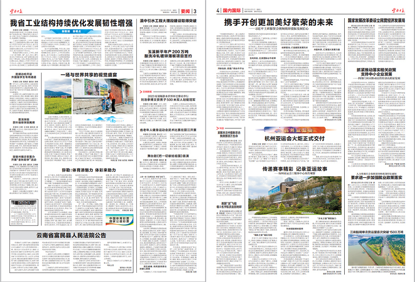 《云南日報》涵蓋了政治、經(jīng)濟(jì)、文化、教育、科技、社會、體育等多個領(lǐng)域的新聞報道,通過豐富多樣的內(nèi)容展示了云南省的發(fā)展與變化。不僅報道了云南省內(nèi)的重大事件、重要工作和政策動態(tài),還關(guān)注國內(nèi)外的重要新聞,為讀者提供了一個了解全球和云南省內(nèi)情勢的窗口。