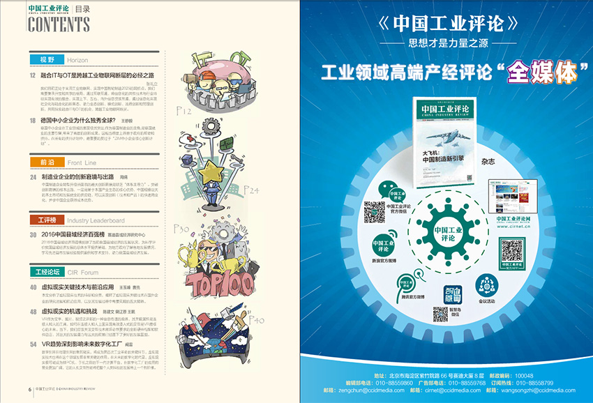 《中國工業(yè)評論》是中國工業(yè)領(lǐng)域的一家高端產(chǎn)經(jīng)評論媒體。作為一本雜志,它秉承著“思想才是力量之源”的辦刊理念,并致力于探究工業(yè)經(jīng)濟(jì)的發(fā)展規(guī)律和內(nèi)在邏輯,為工業(yè)經(jīng)濟(jì)決策者提供服務(wù)。它的辦刊宗旨是“探究轉(zhuǎn)型之道,求解變革之理”。在當(dāng)今“兩化深度融合”的大背景下,它借助互聯(lián)網(wǎng)新思維研究工業(yè)經(jīng)濟(jì),旨在幫助讀者了解和應(yīng)對工業(yè)經(jīng)濟(jì)領(lǐng)域面臨的挑戰(zhàn)和機(jī)遇。通過深入的報道和評論,它努力推動智能制造的探索與實踐,并為決策者提供有用的思路和洞見。