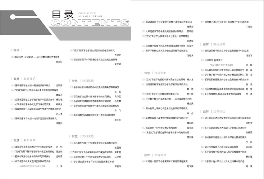 《智力》雜志是一本專(zhuān)注于智力培養(yǎng)、思維訓(xùn)練和知識(shí)傳播的高質(zhì)量期刊。它的內(nèi)容涵蓋了廣泛的主題,從數(shù)學(xué)和邏輯推理到科學(xué)和文化,從人文藝術(shù)到自然科學(xué),旨在為讀者提供具有啟發(fā)性和挑戰(zhàn)性的文章和游戲,幫助讀者拓寬視野,提高智力水平。