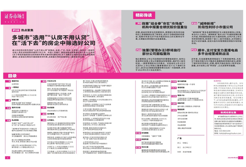 個(gè)股研究與推薦:《證券市場(chǎng)周刊》會(huì)對(duì)某些個(gè)股進(jìn)行深入研究和分析,并給出相應(yīng)的投資建議,幫助投資者做出明智的投資決策。行業(yè)動(dòng)態(tài)和前沿:該雜志會(huì)對(duì)不同行業(yè)的發(fā)展動(dòng)態(tài)進(jìn)行跟蹤報(bào)道,介紹新興產(chǎn)業(yè)和熱點(diǎn)行業(yè)的投資機(jī)會(huì),幫助讀者把握市場(chǎng)的脈搏。